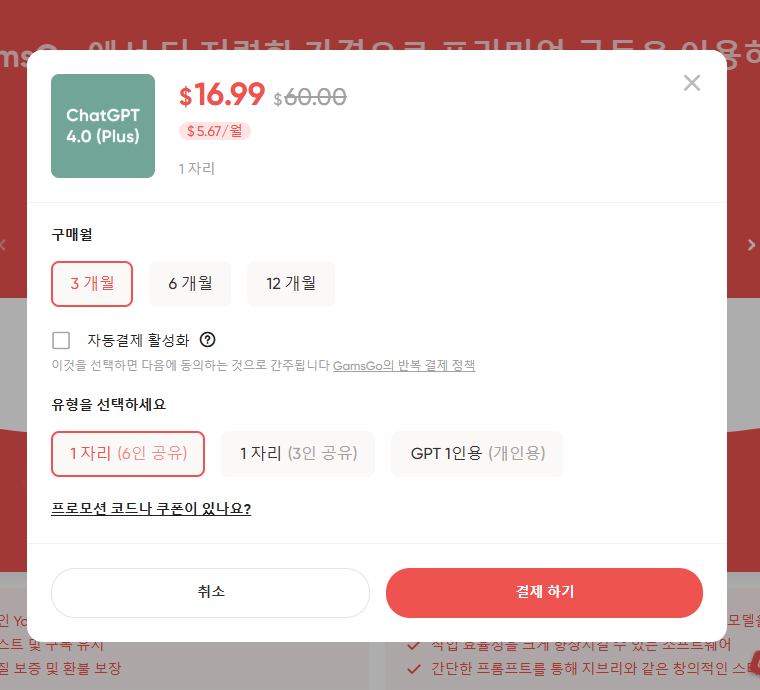 - 3명/6명 공유요금제로 커피 한 잔 가격으로 한 달 이용 가능