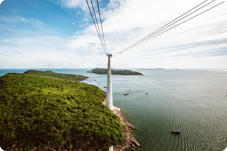 혼톰 케이블카는 세계에서 가장 긴 해상 케이블카로, 아름다운 바다 위에서 멋진 경치를 감상할 수 있습니다. 케이블카를 타고 이동하면서 푸꾸옥의 섬을 한눈에 내려다볼 수 있으며, 특히 해질 무렵에는 환상적인 풍경을 선사합니다.