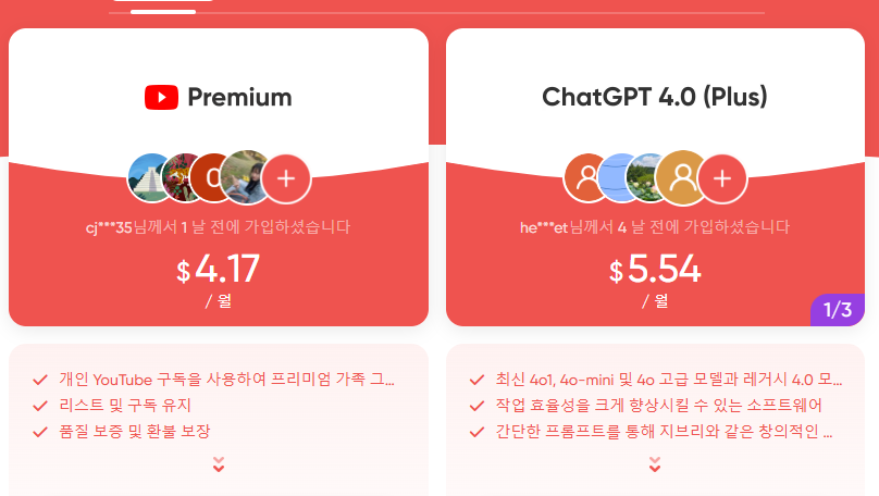 한 달에 하나 가격으로 여러 개 이용할 수 있는 셈이라 지갑도 덜 아프고 마음은 풍족하죠 💸